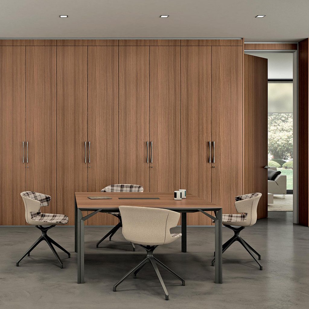 A1 - Superare il concetto di ufficio direzionale e proporsi come sistema di elementi definiti. Cura artigiana e valenza del design sintetizzati in una collezione unica. Un esempio di perfetto equilibrio tra naturalezza e modernità. Un progetto denso di fascino e di suggestioni in cui le scelte progettuali esprimono una precisa vocazione alle forme primarie, alla semplicità e al rigore.