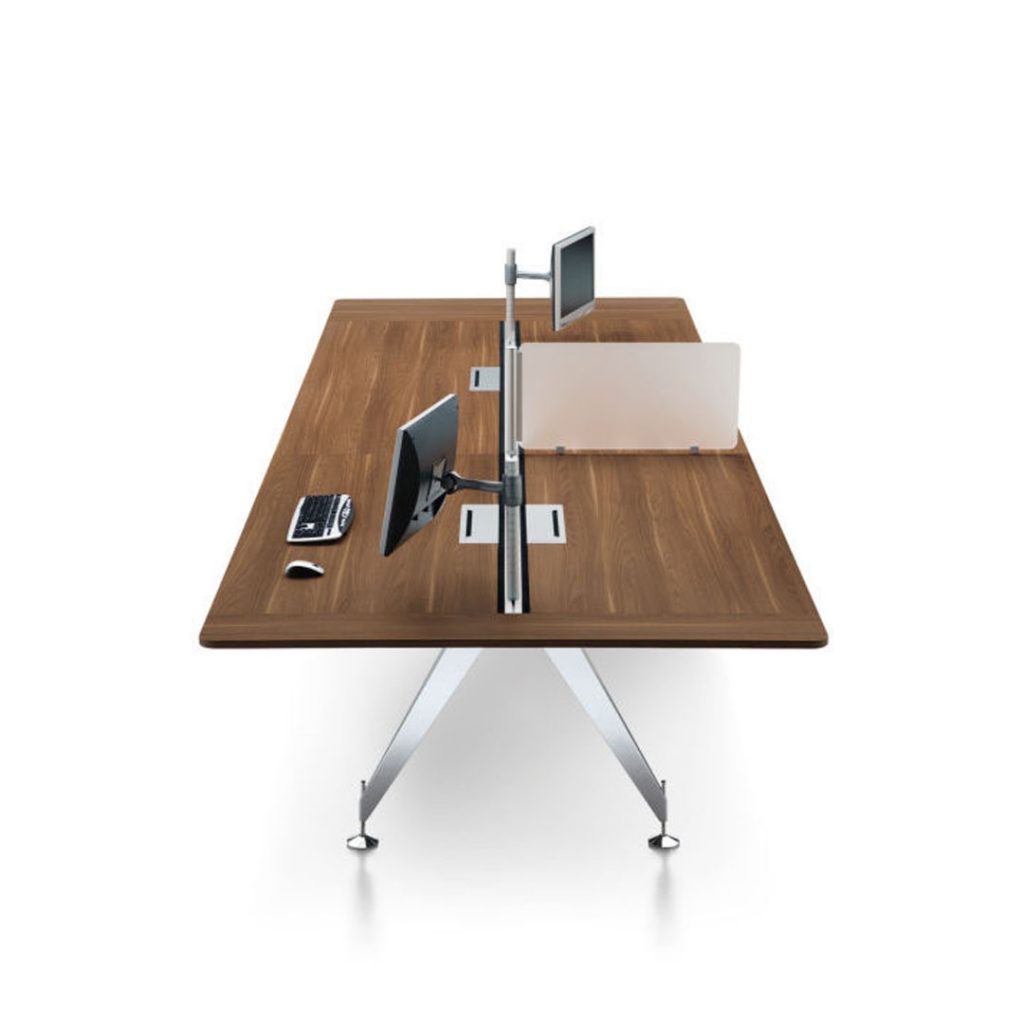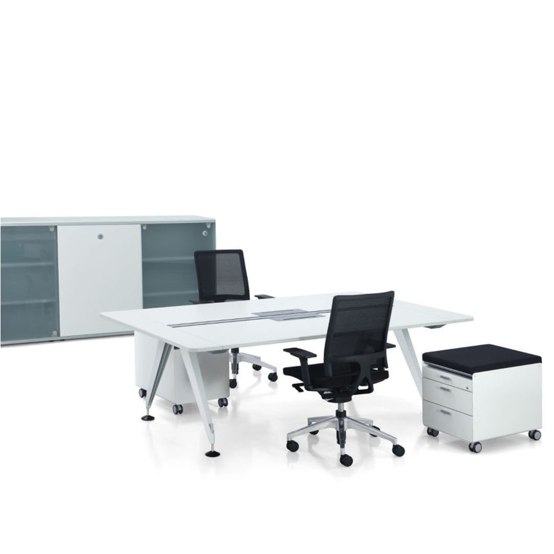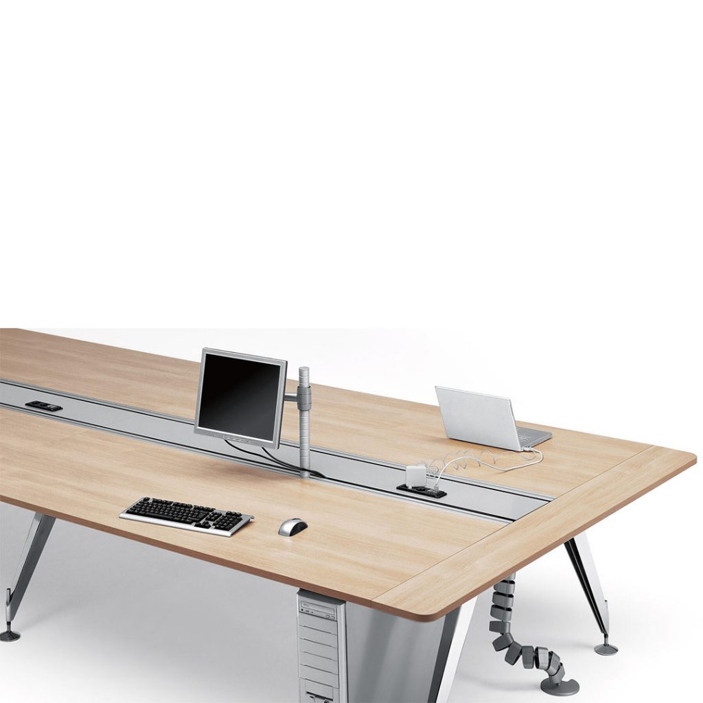 Numerosi sono gli accessori per l'organizzazione del lavoro, e sono rapidamente a portata di mano, perché possono essere integrati facilmente e senza ricorrere ad attrezzi. I cavi per corrente, reti e portatile spariscono grazie alla vaschetta cavi perfettamente accessibile, per un risultato ordinato.