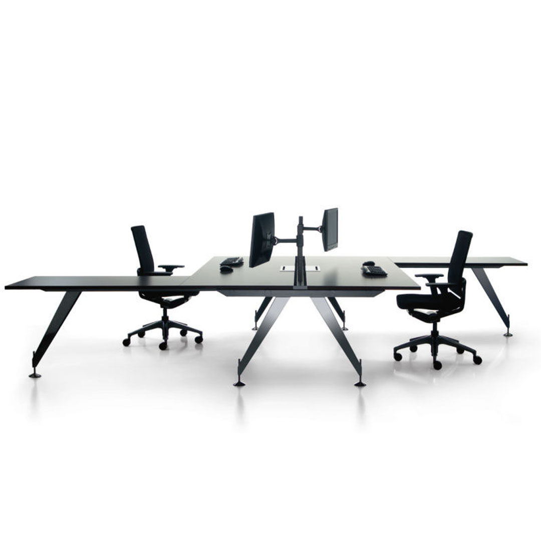 I tavoli invitation comunicano con un linguaggio formale chiaro. Ricchi di dettagli eleganti, come ad esempio la base ad A in alluminio pressofuso, che mostra quanto la solidità sia anche in grado di produrre un effetto di leggerezza.