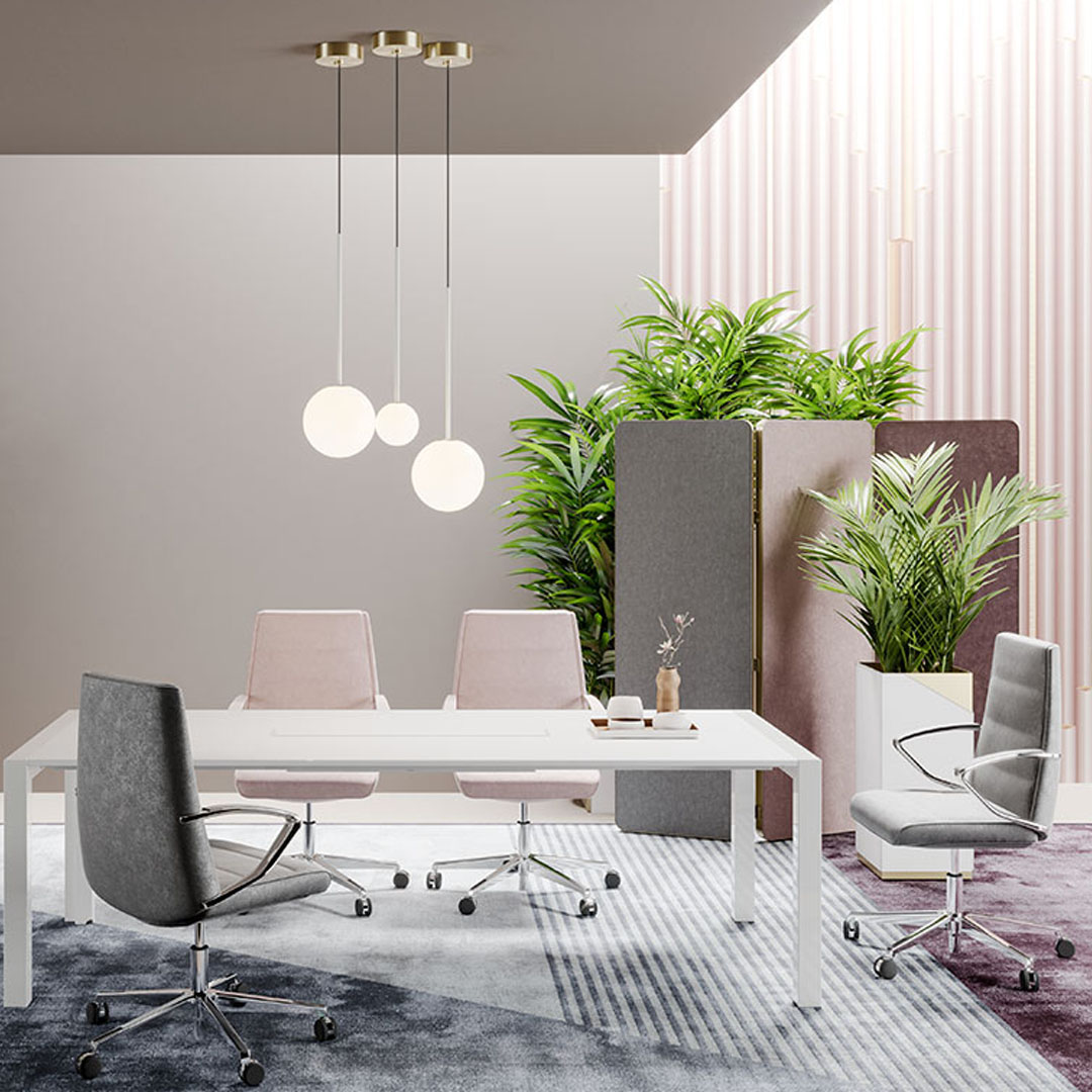 Semplice e versatile, B01 è una collezione caratterizzata da un’essenziale struttura metallica e da un piano leggero, che si inserisce facilmente in ambienti di lavoro diversi.