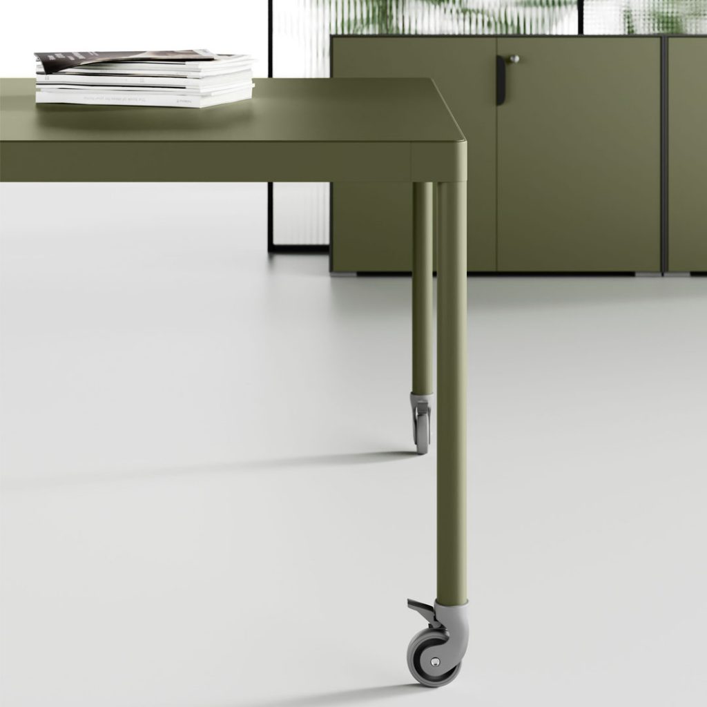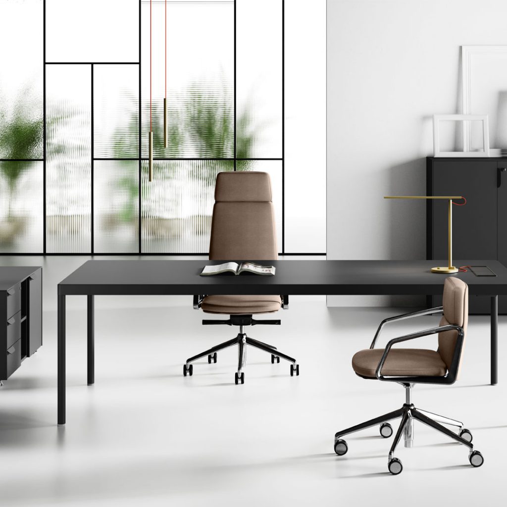 B03 è una collezione di scrivanie e tavoli riunione dall’impiego trasversale per uffici semi-direzionali, operativi top e sale riunioni. Il telaio perimetrale in alluminio, il piano incassato a filo, gli spigoli arrotondati definiscono un nuovo stile.