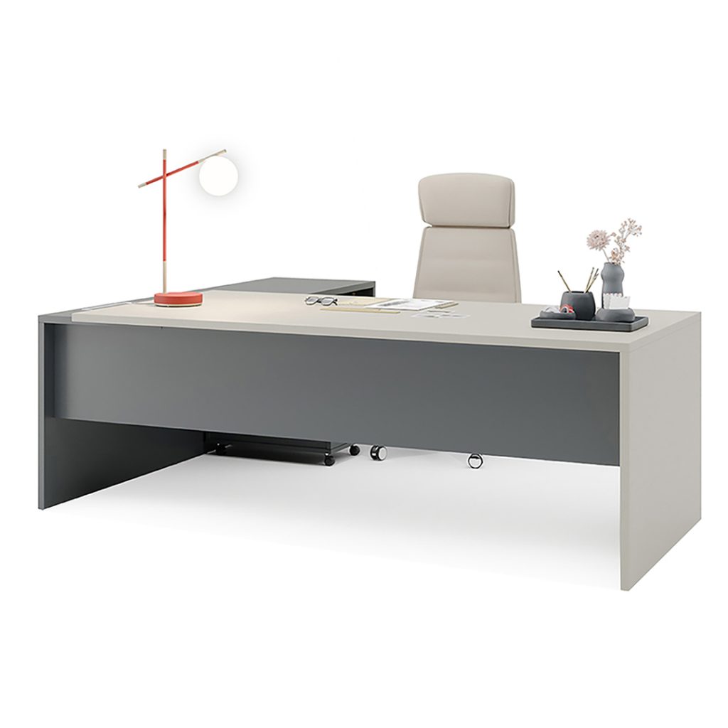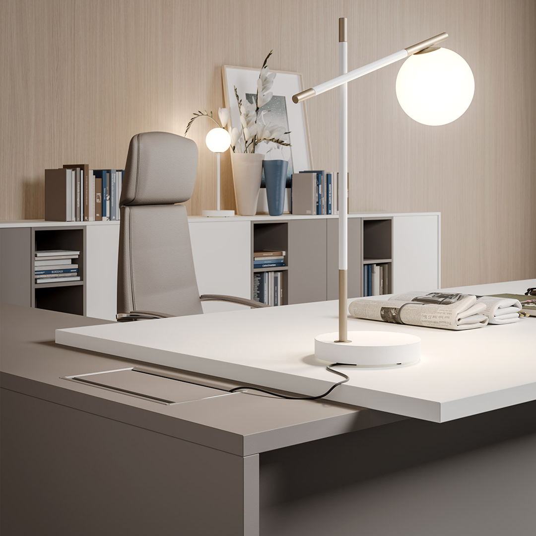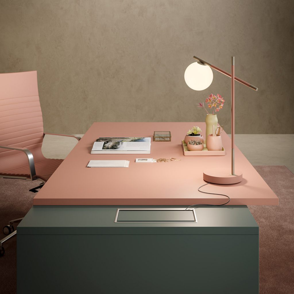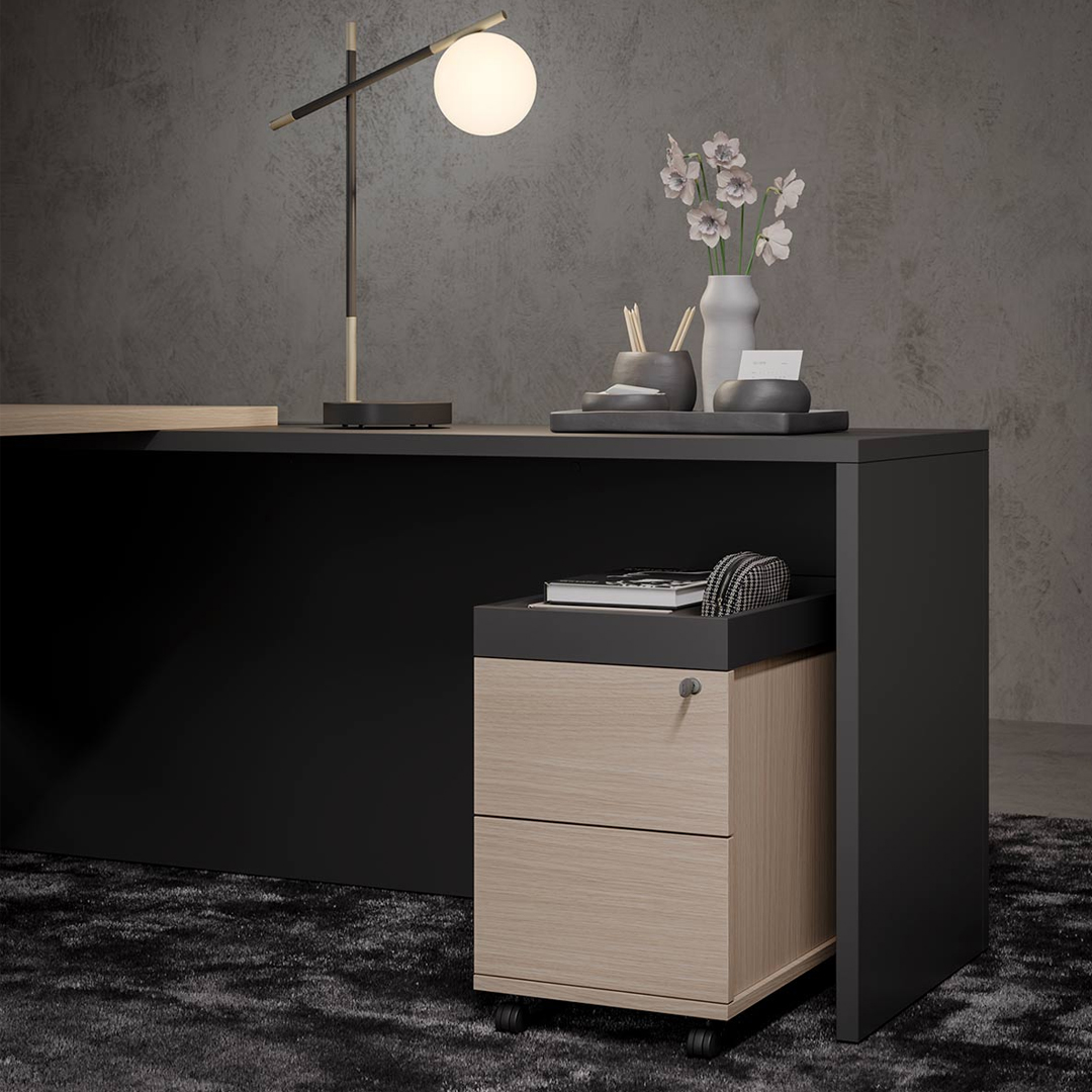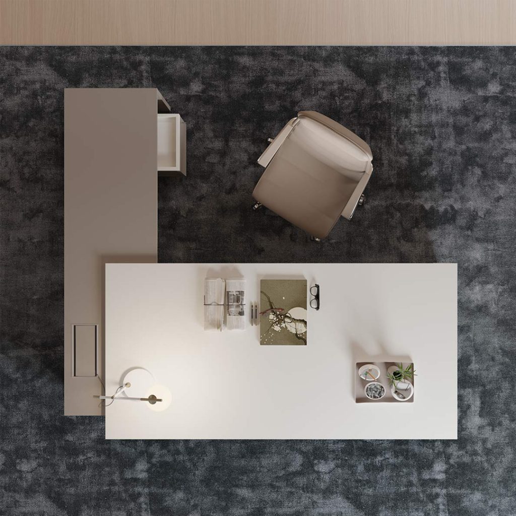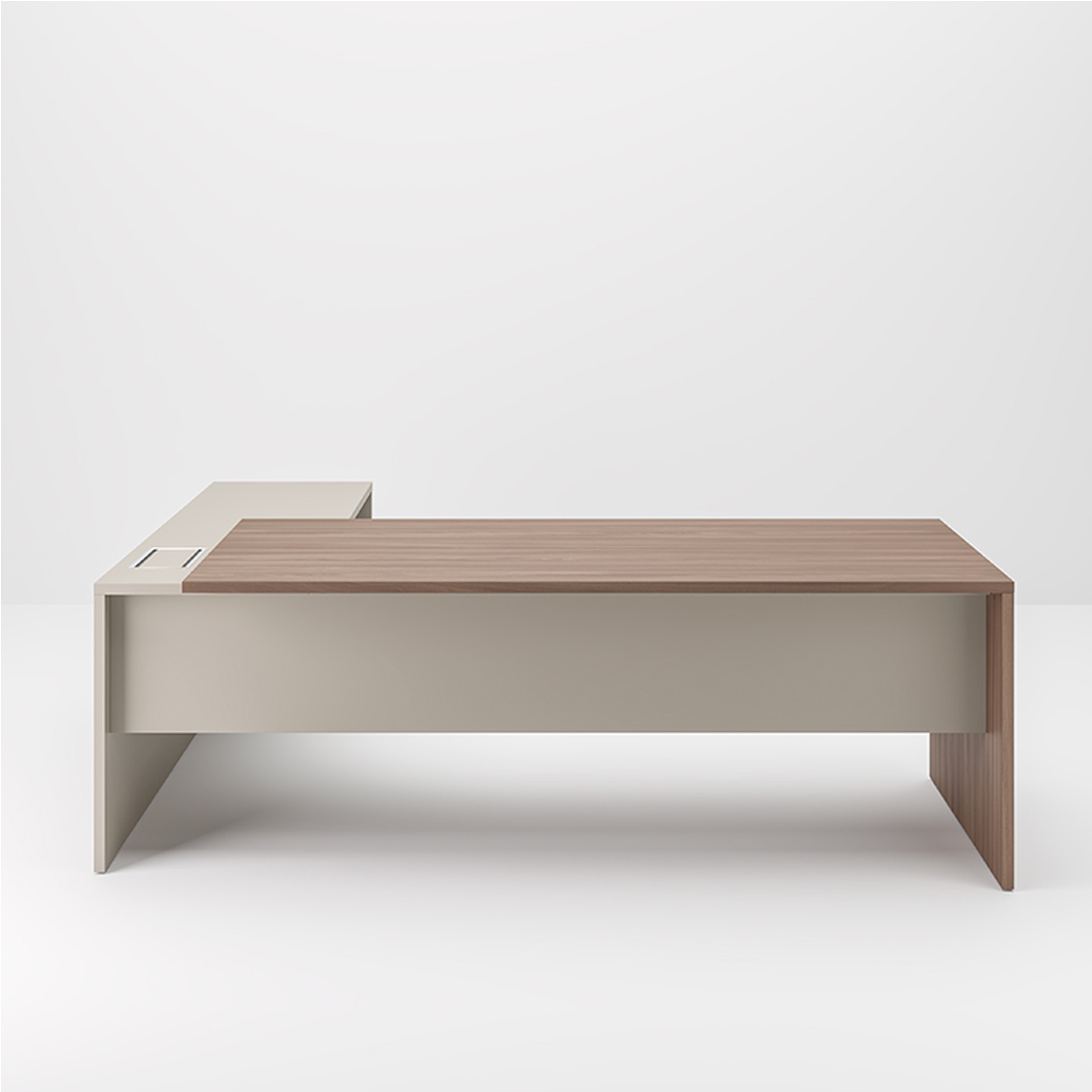 La scrivania è caratterizzata da una struttura e un piano in legno disponibile in melaminico, laccato, Fenix e impiallacciato.