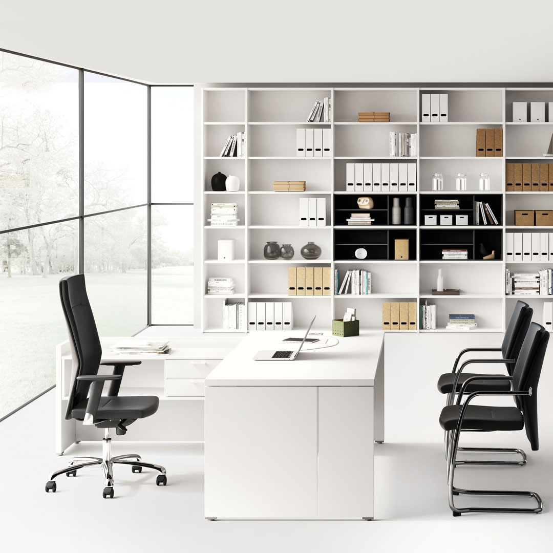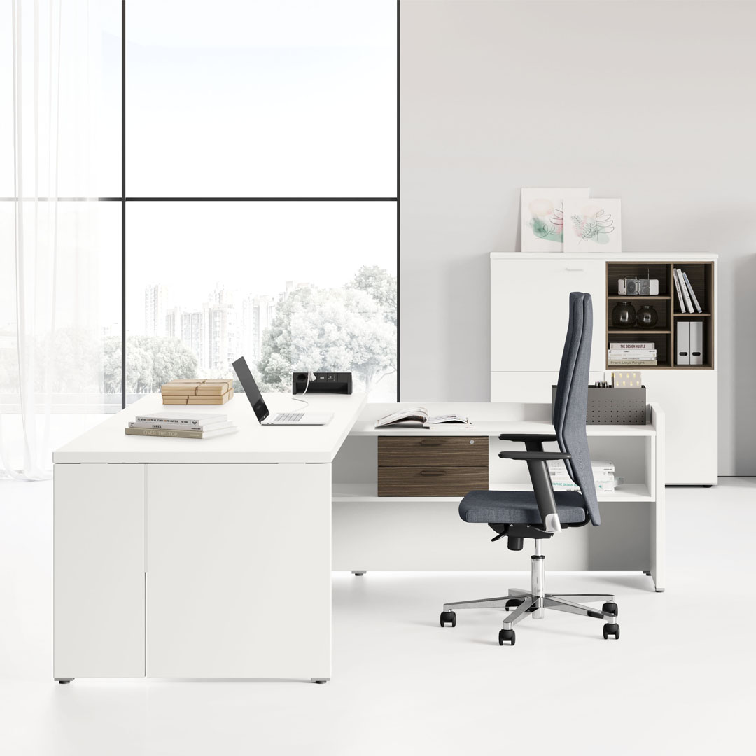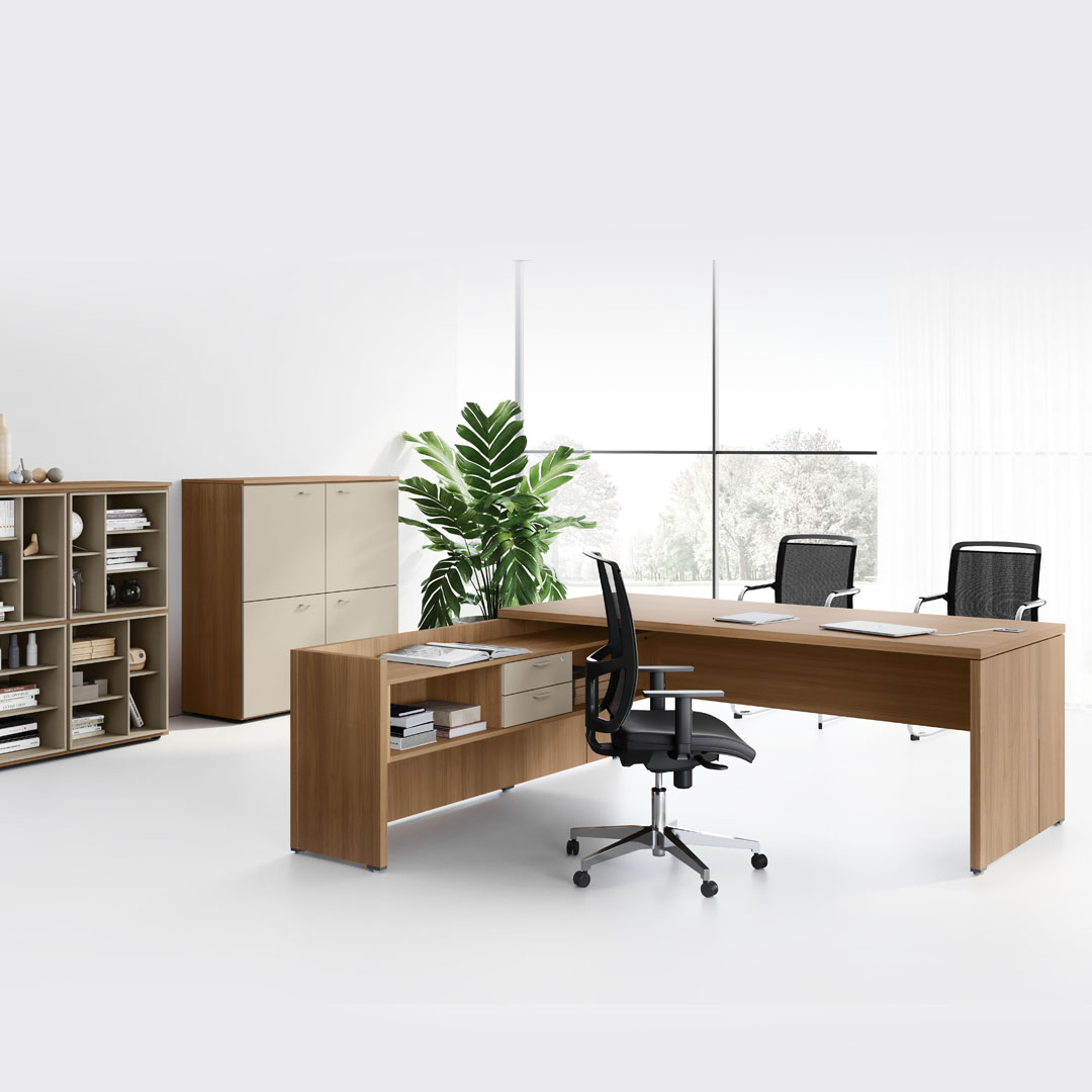 B05 - È il sistema robustissimo di arredo per l’ufficio Semi direzionale, flessibile e personalizzato, dedicato a tutti gli ambienti di lavoro moderni per i quali si vuole avere un aspetto importante e solido.