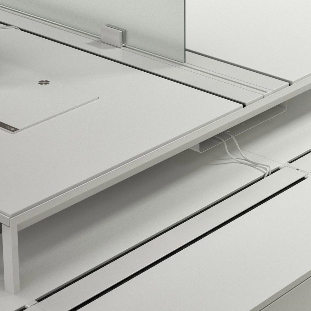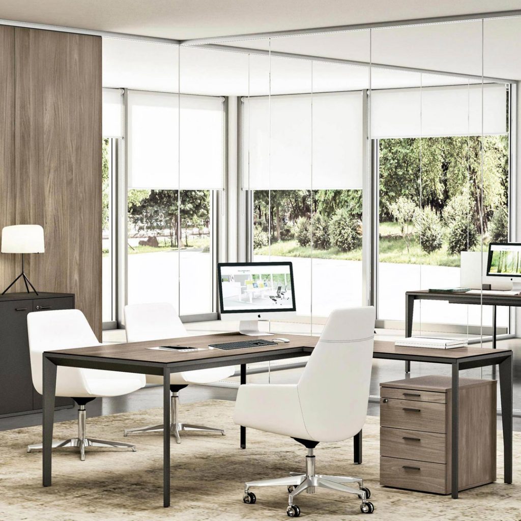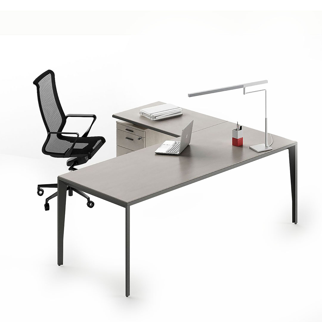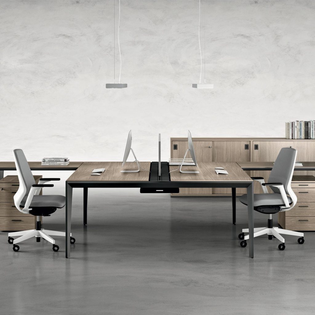 La superficie di lavoro è ampliata dall’utilizzo del piano dattilo con cassettiera portante. Gli elementi d’arredo rispettano le esigenze del singolo, incrementando le prestazioni individuali di chi deve decidere.