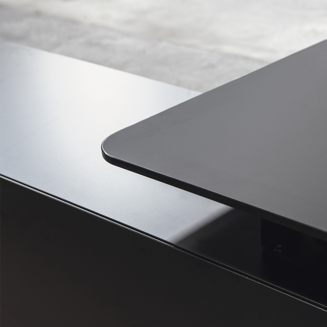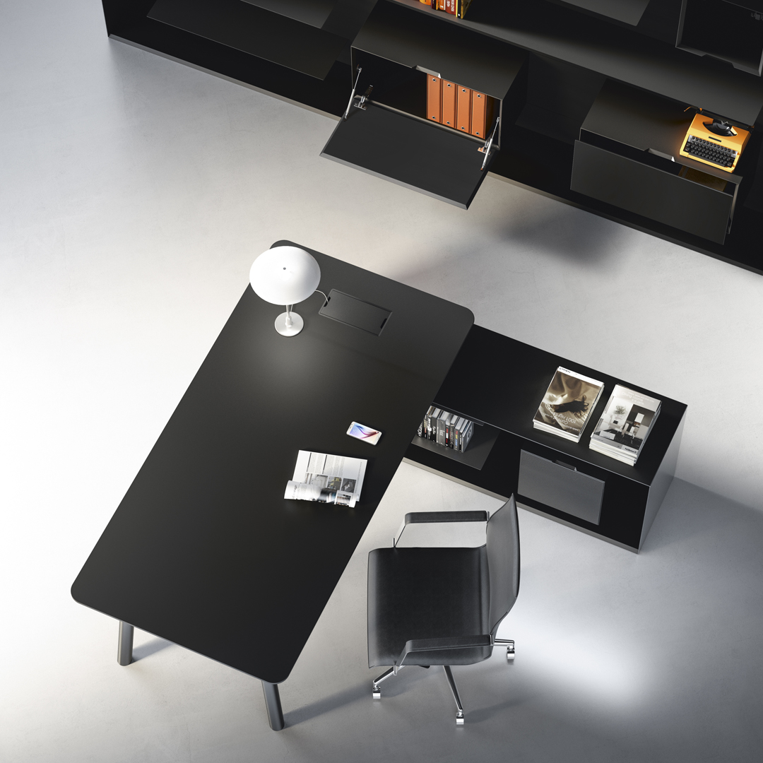 Queste scrivanie vengono proposte anche in Fenix. Un'alternativa tecnologica: materiale innovativo, realizzato con particolari lavorazioni e trattamenti, Fenix è resistente, igienico e morbido al tatto. Disponibile in bianco oppure nero, è opaco e anti-impronta, garantendo qualità estetica ed elevata praticità.