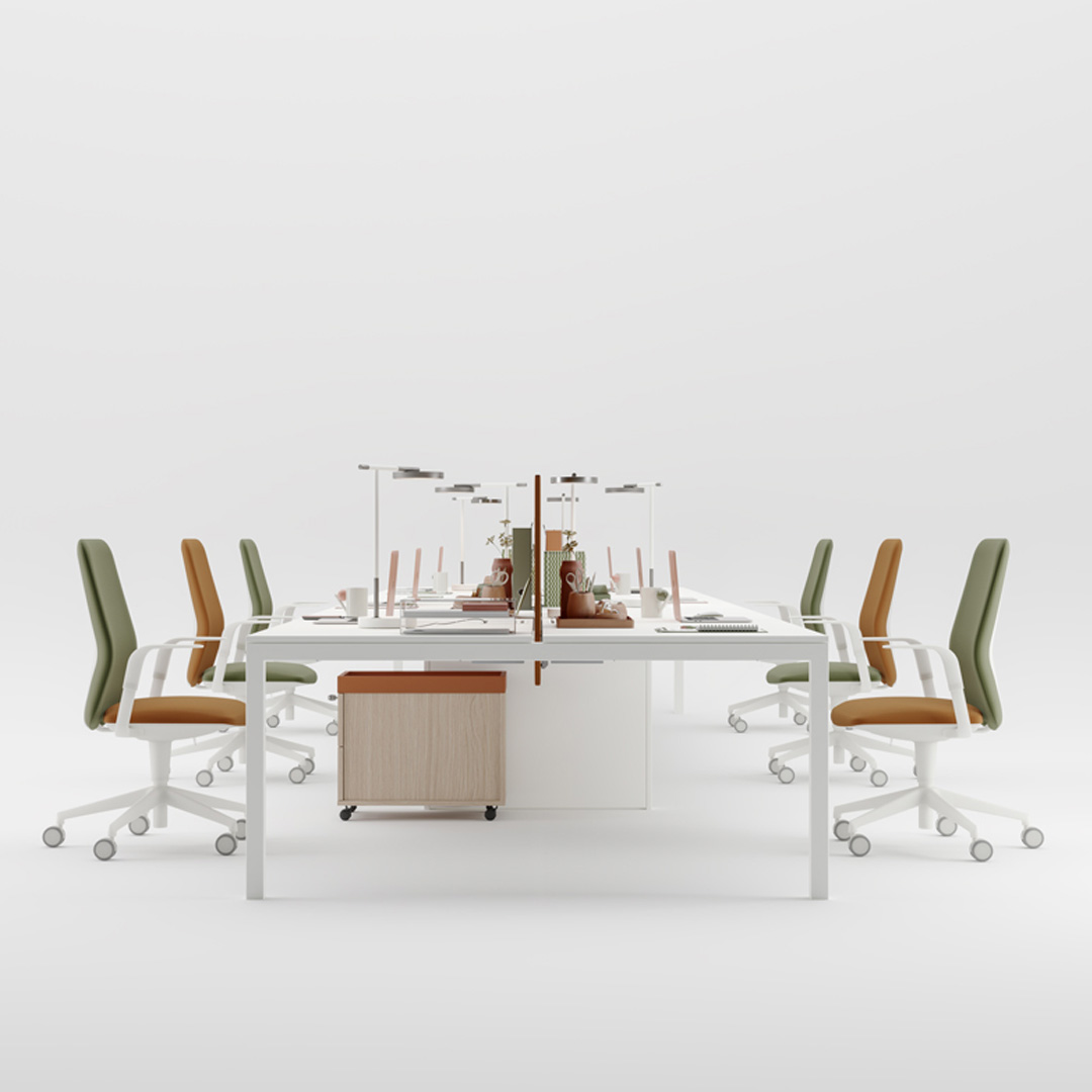 C06 è una collezione di scrivanie e tavoli riunione che si adatta perfettamente alle necessità degli ambienti operativi e manager.
