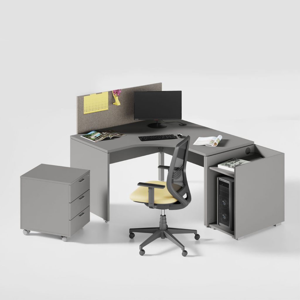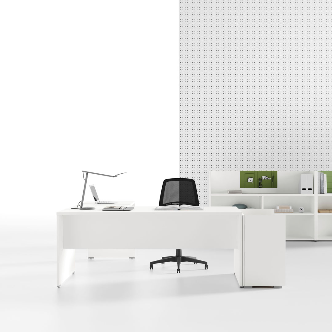 C07 – Questa serie si caratterizza per la gamba a pannello. Con le sue soluzioni geometriche e tecniche soddisfa qualsiasi esigenza funzionale e di layout, inserendosi perfettamente in ogni ambiente grazie anche alle numerose finiture e agli accessori.