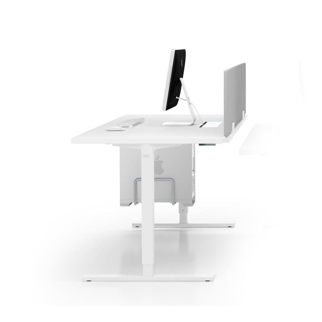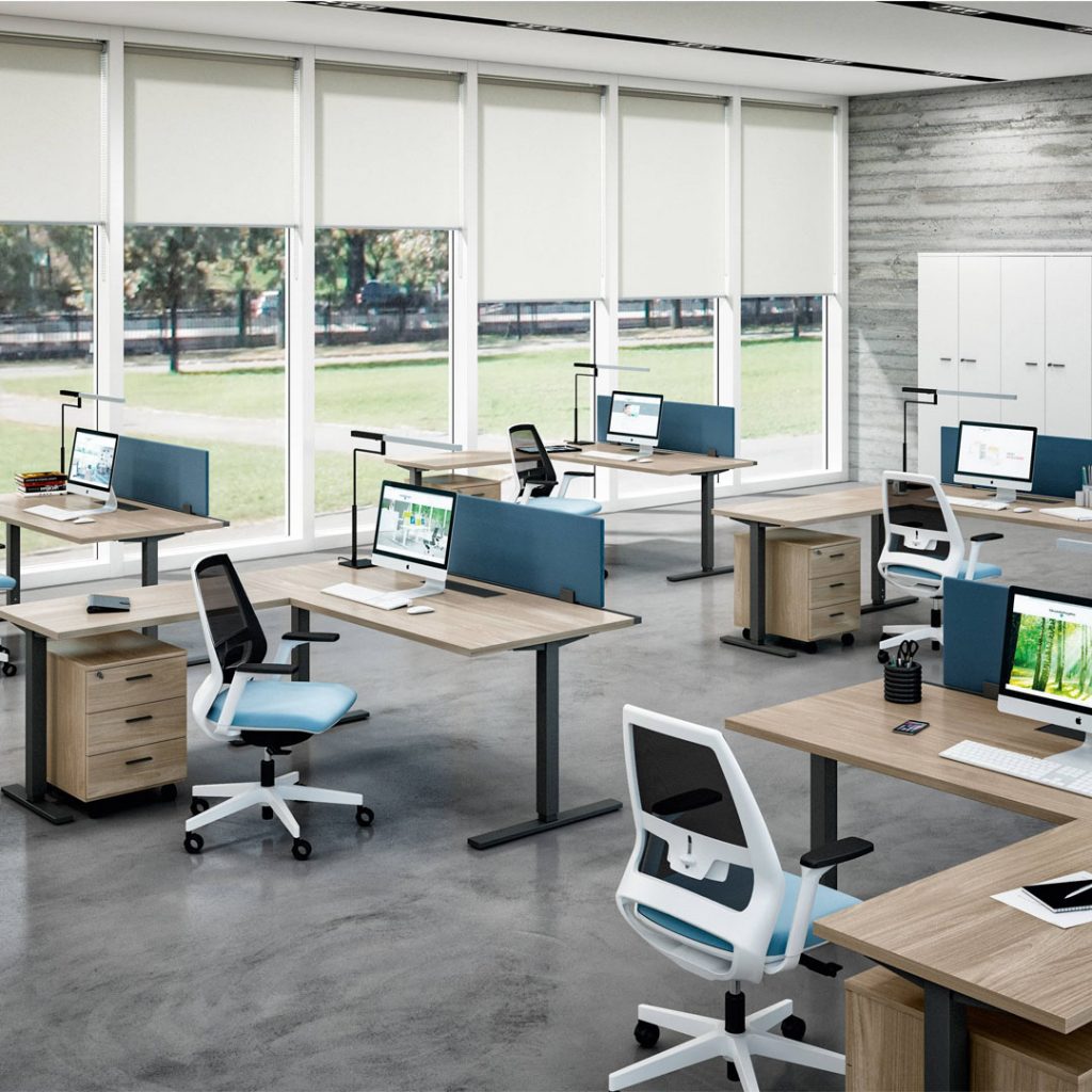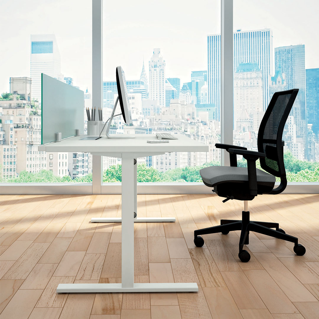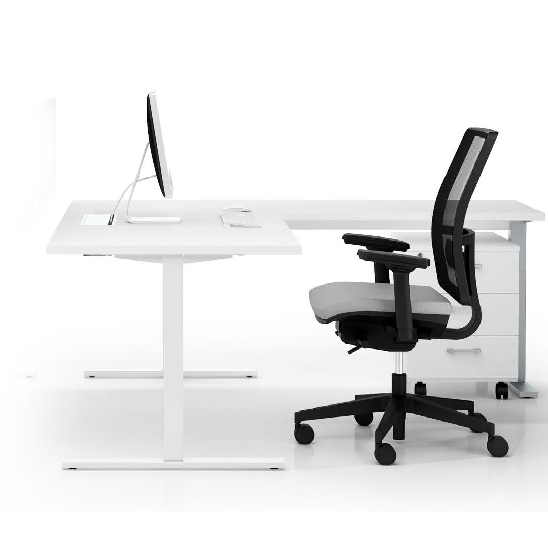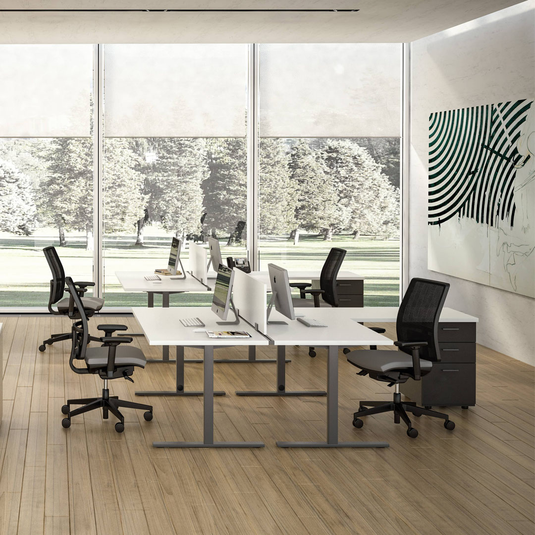 La gamba è disponibile anche regolabile in altezza grazie ad un meccanismo che garantisce una regolazione da 67,5 a 77,5 cm. Particolare attenzione è stata posta al cablaggio delle postazioni, sia orizzontale che verticale.