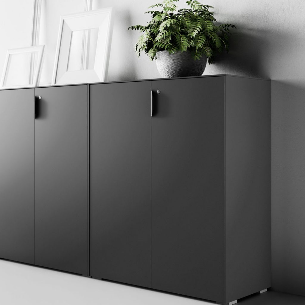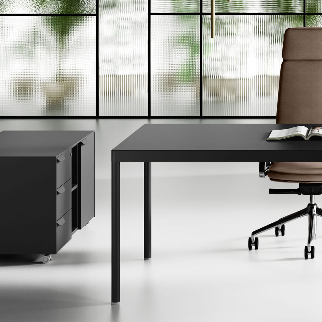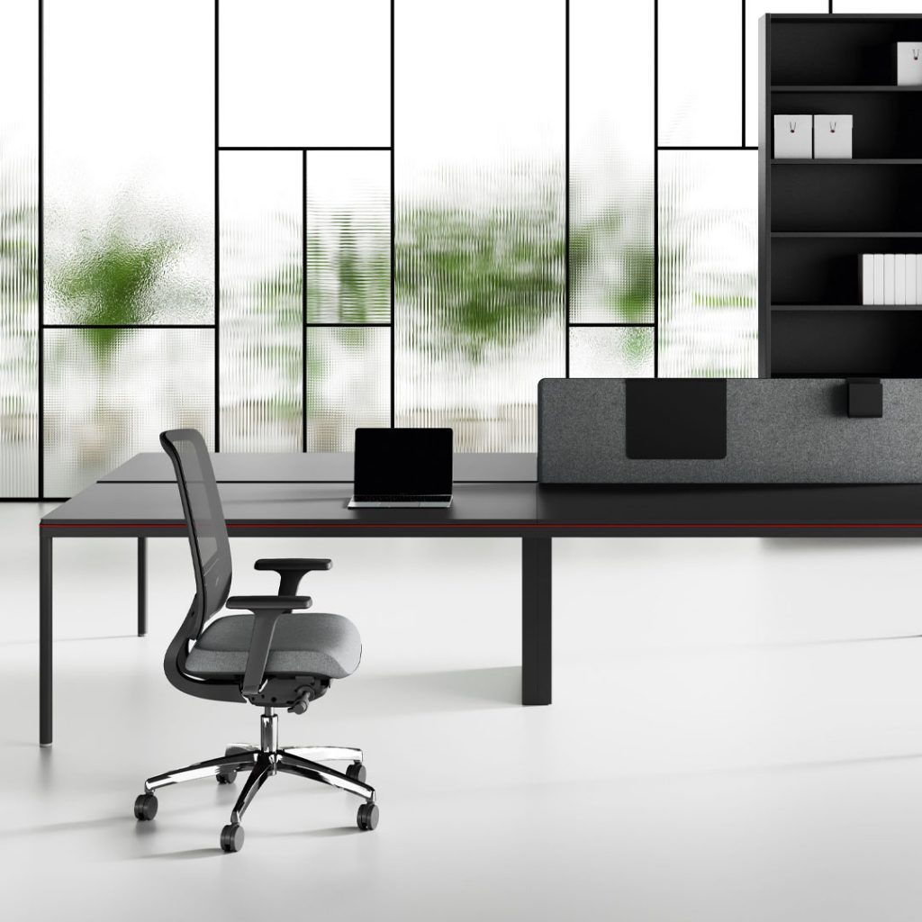 Le finiture dei melaminici è moderna ed accattivante e si aggiunge all’opportunità di scegliere i colori delle strutture metalliche, alle tipologie di tessuti per rivestimenti acustici, ai Pannelli divisori attrezzabili, alle Cassettiere ed ai mobili di servizio su ruote.