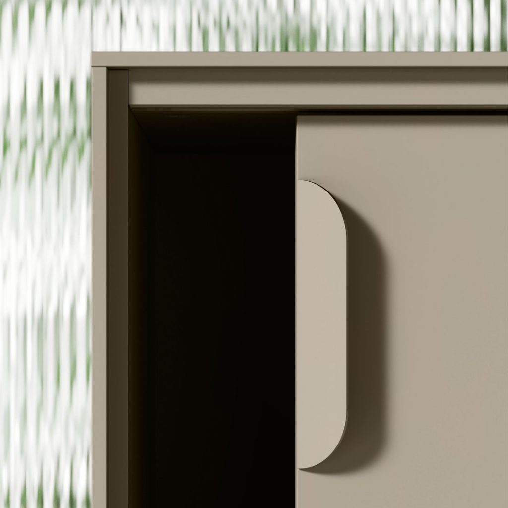 Le maniglie sono in tinta con l’anta per non alterare le superfici dei contenitori.