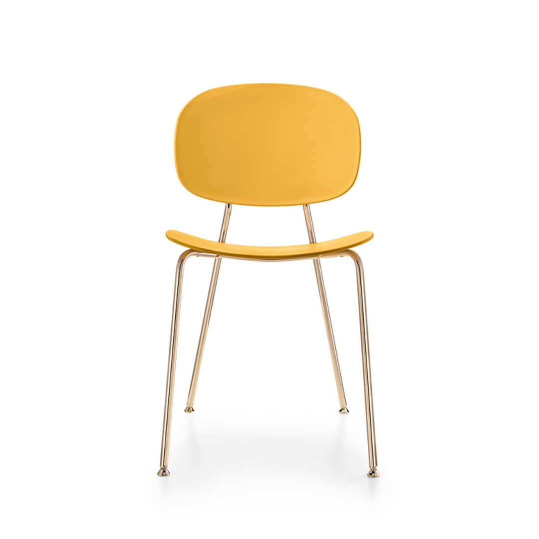 Sedia con struttura in acciaio disponibile in varie finiture verniciate e cromate.