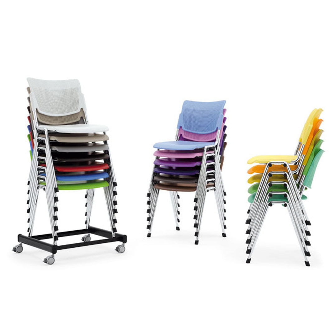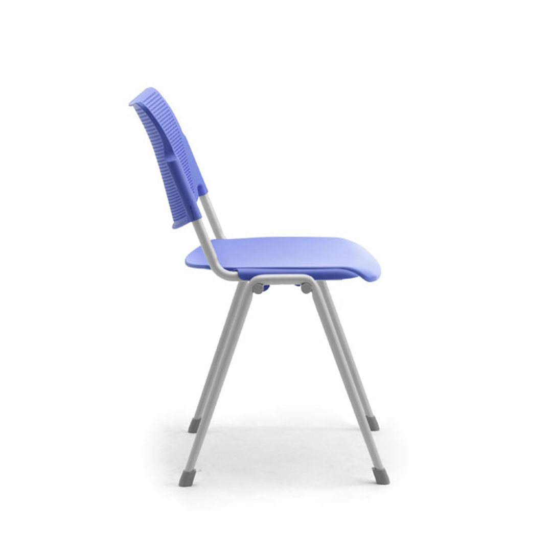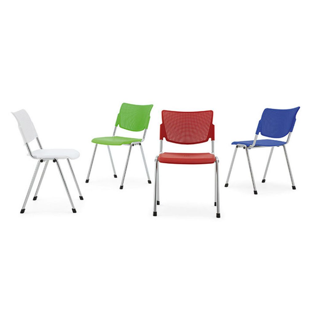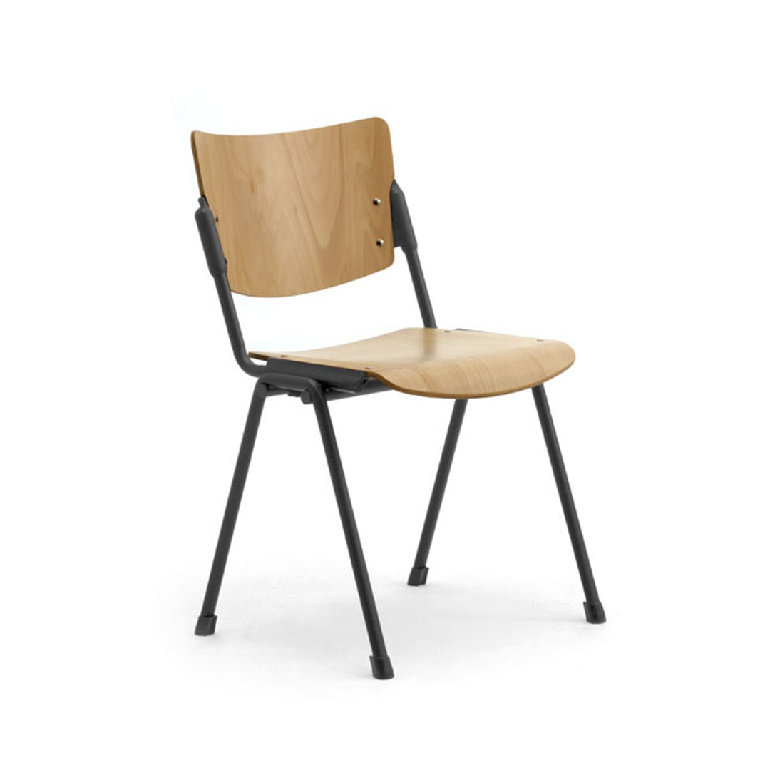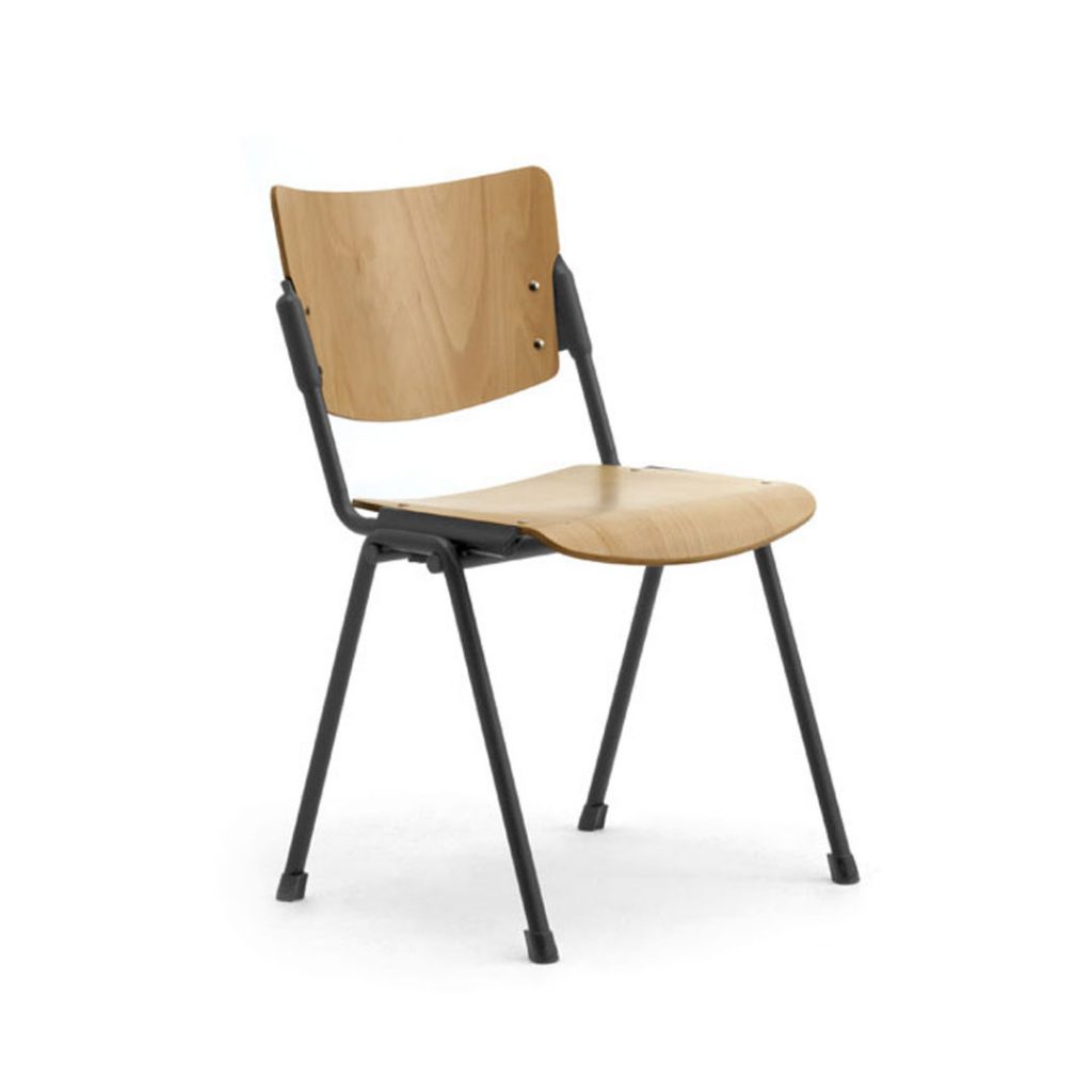 Seduta e schienale sono disponibili in polipropilene stampato ad iniezione con trattamento anti UV, in metallo verniciato con polveri epossidiche oppure in legno di faggio.