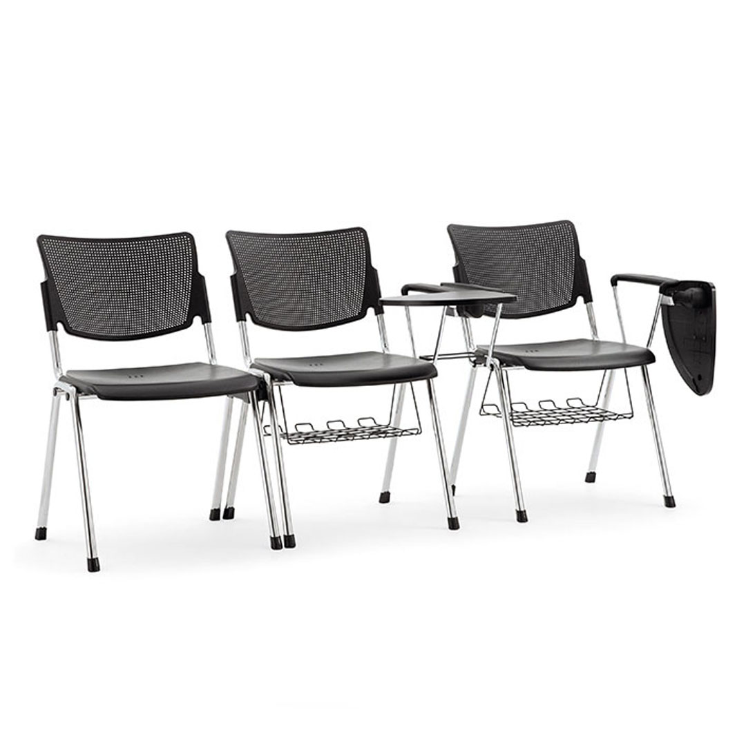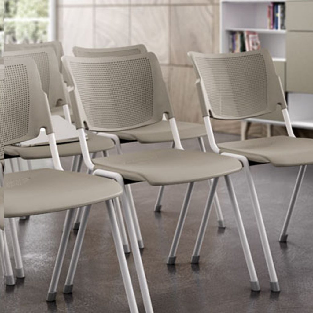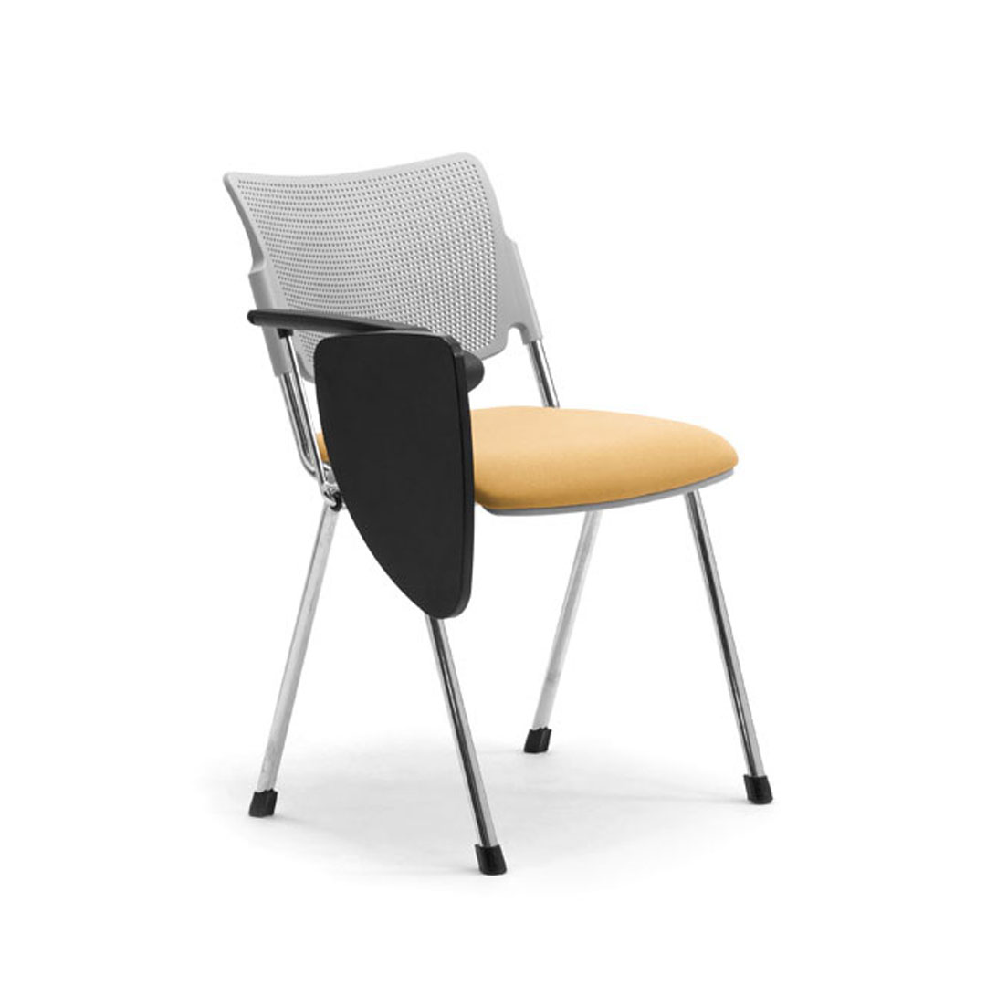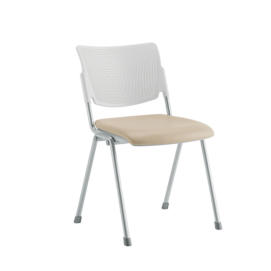 Seduta e schienale sono disponibili in polipropilene stampato ad iniezione con trattamento anti UV, in metallo verniciato con polveri epossidiche oppure in legno di faggio.