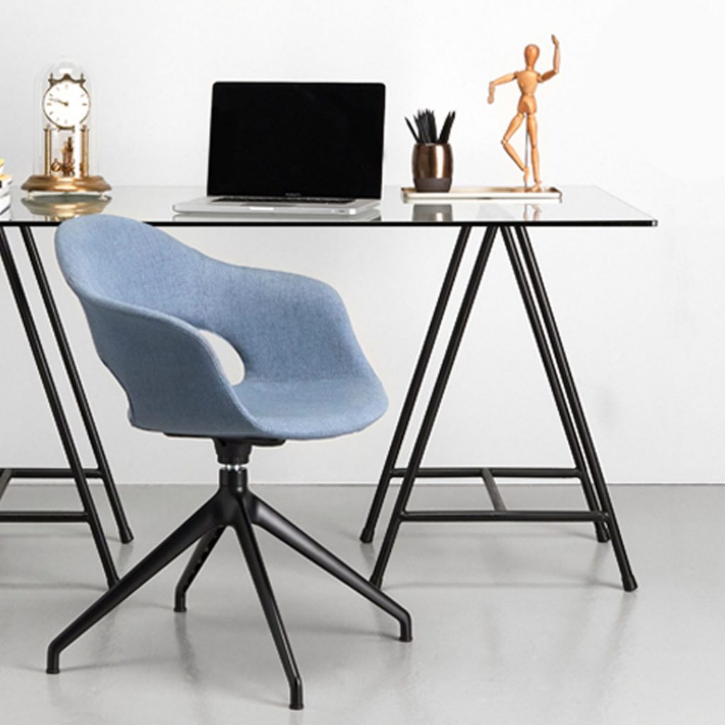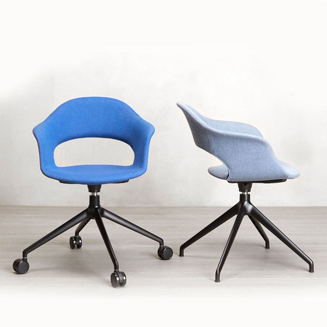 Particolarmente adatta alle soluzioni home office, è la versione imbottita con telaio a quattro razze con o senza ruote, che avvolge nell’eleganza e nel comfort chi è di passaggio per una riunione e chi vi rimane seduto per tutto il giorno.