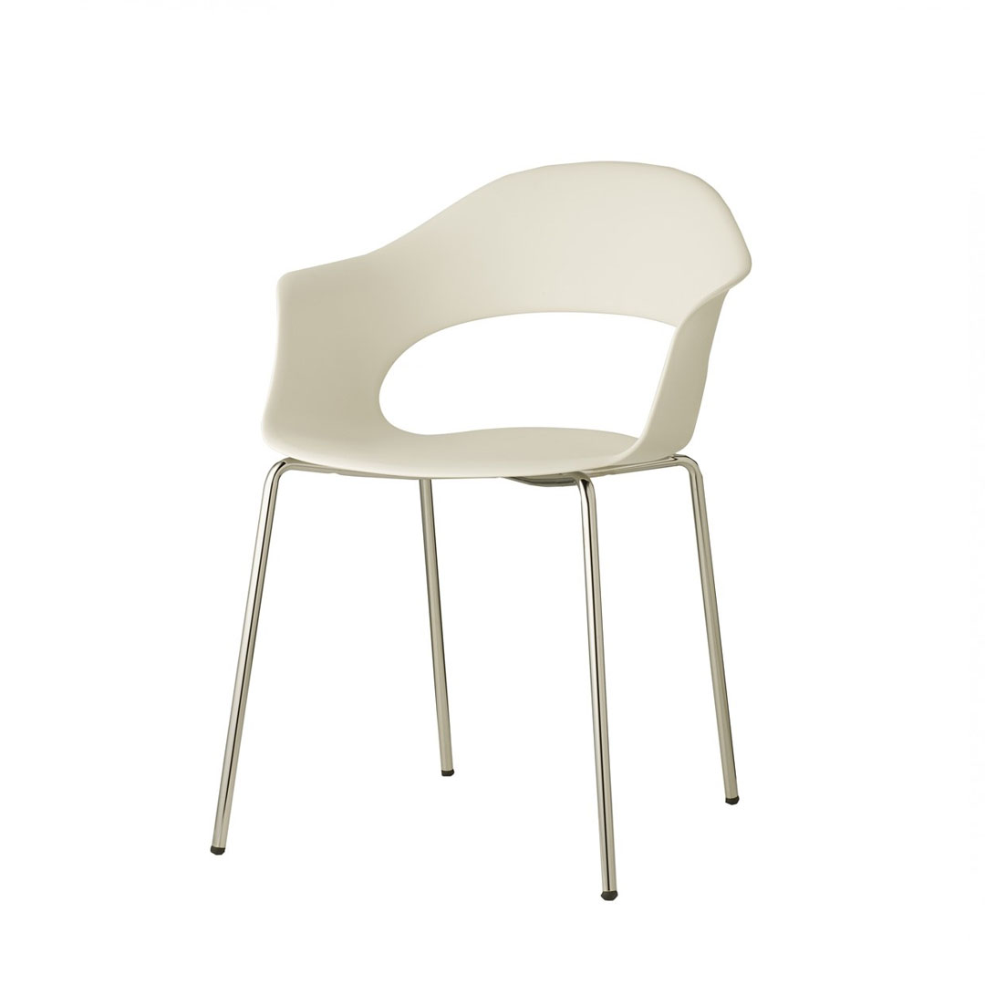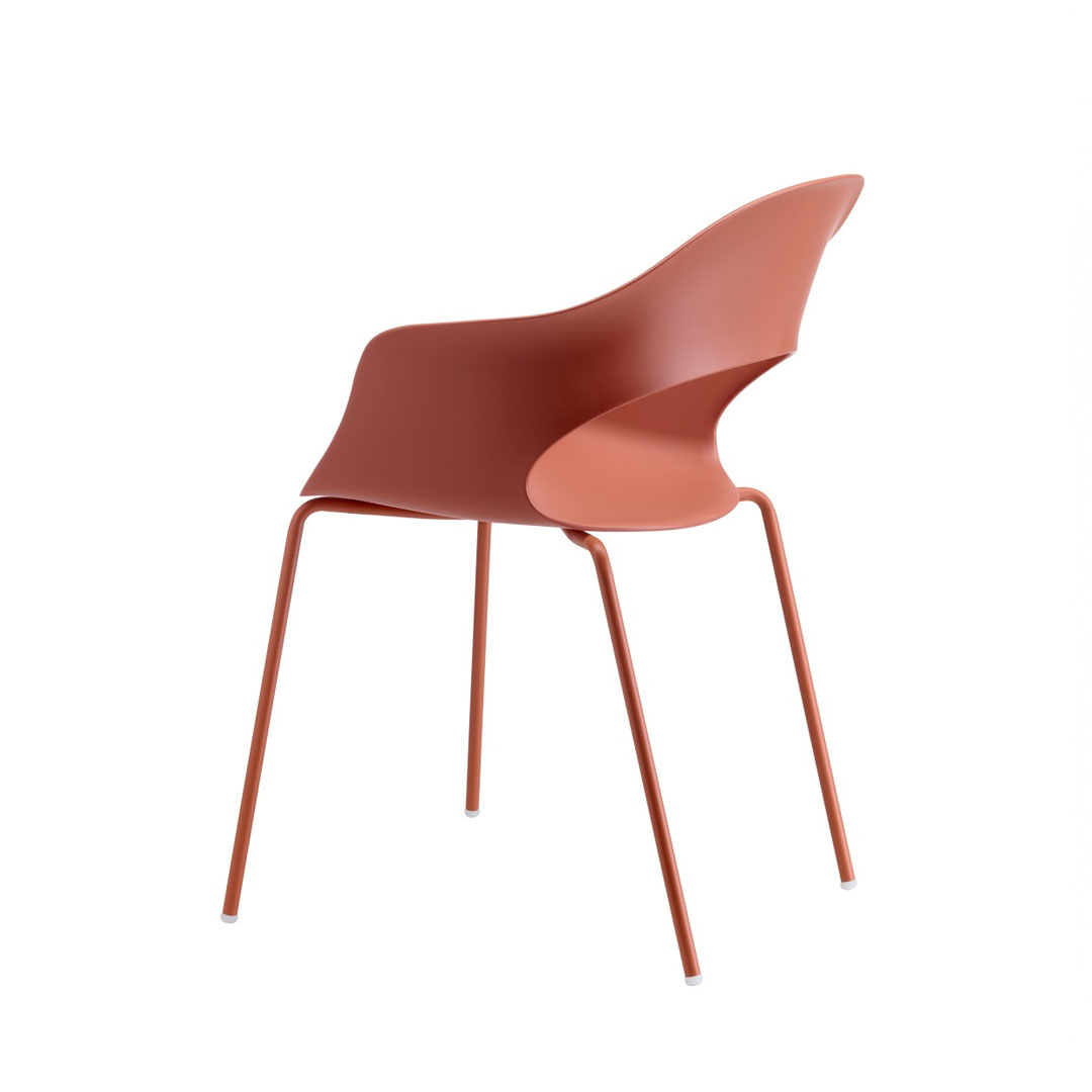 È una sedia avvolgente, elastica, resistente alle sollecitazioni più importanti e ed è anche impilabile e quindi comoda da spostare e gestire.