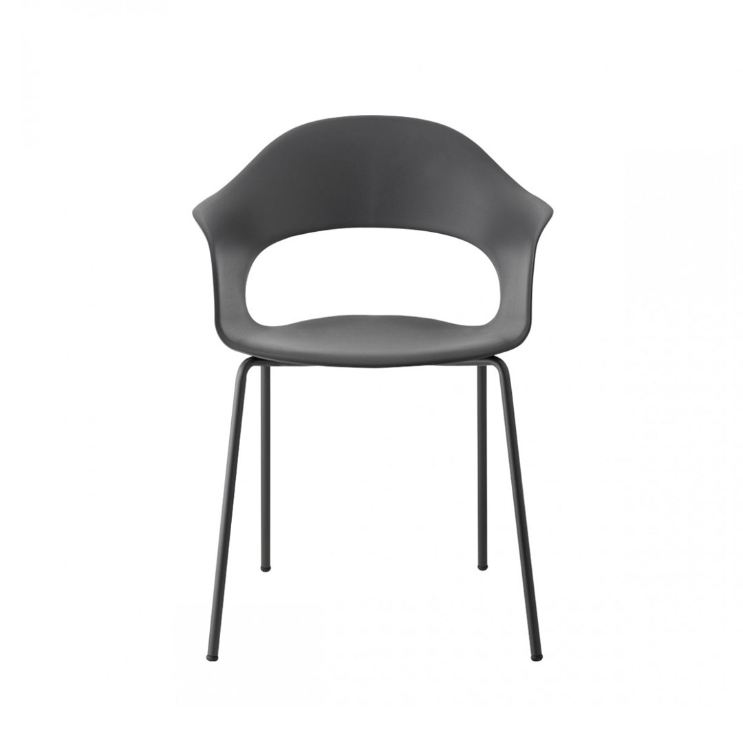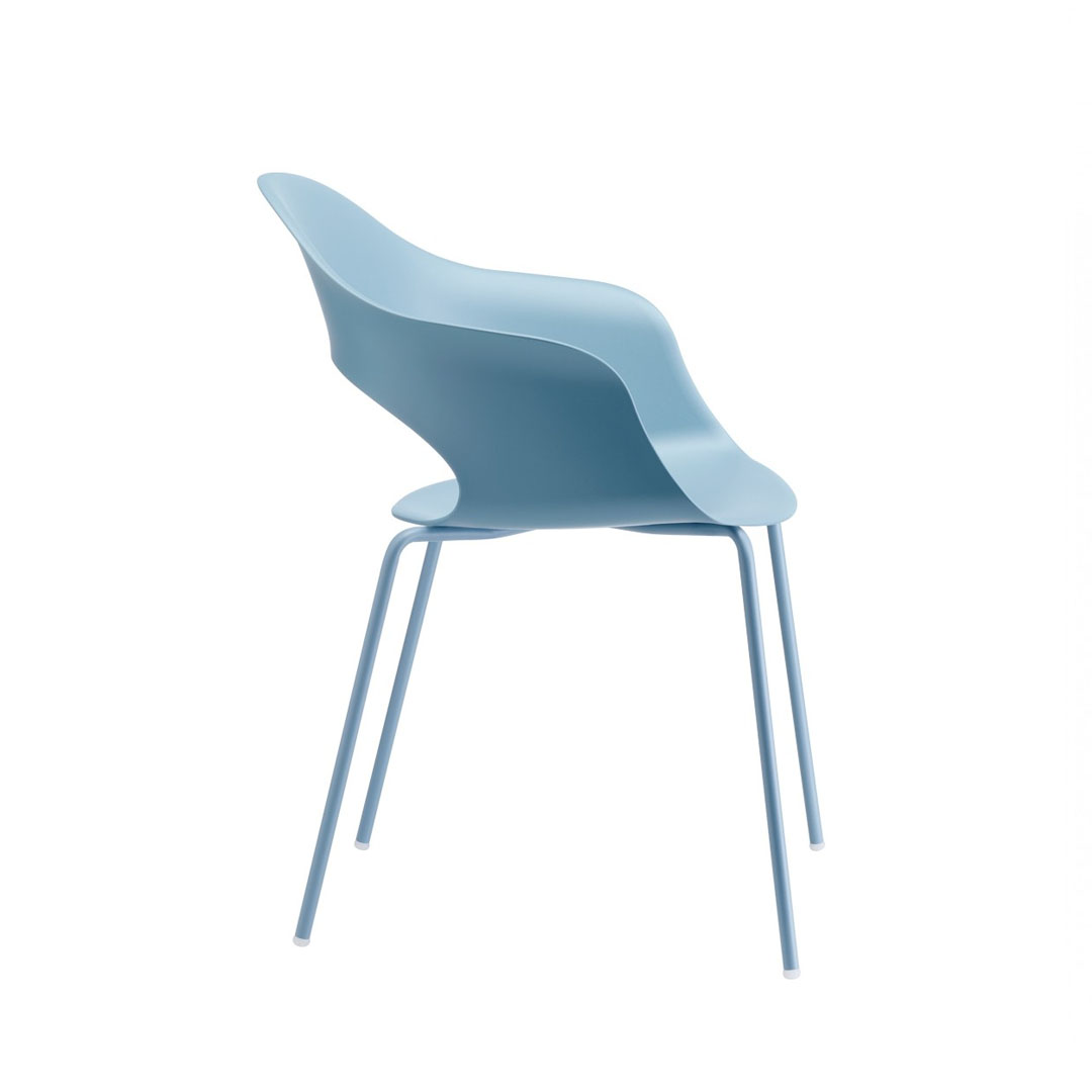 Sedia con seduta in tecnopolimero e gambe in acciaio tubolare ø 12 mm.