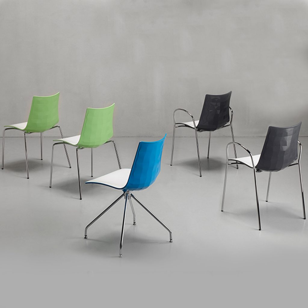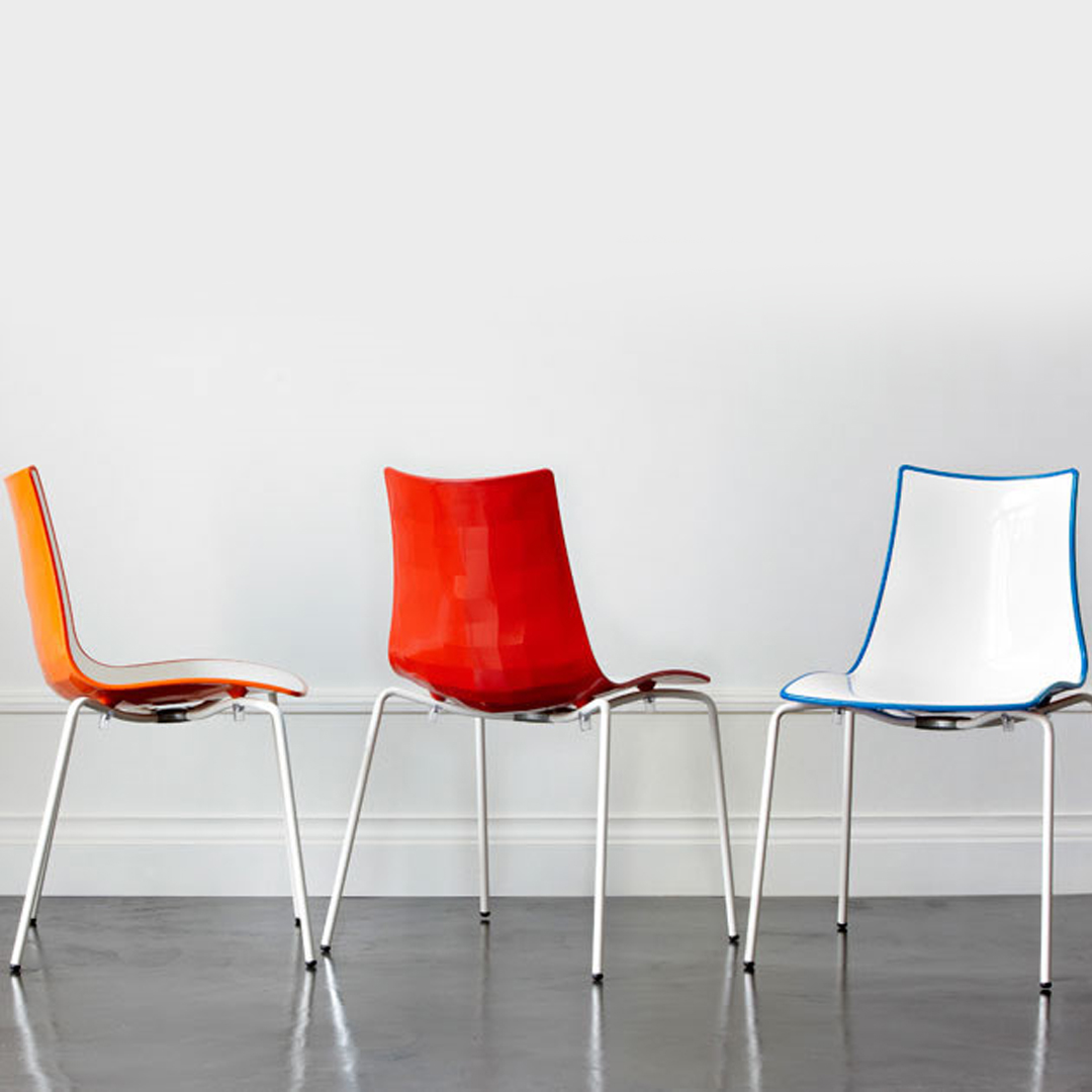 Struttura in tubo d'acciaio a 4 gambe, cromato o con finitura effetto ottone satinato.